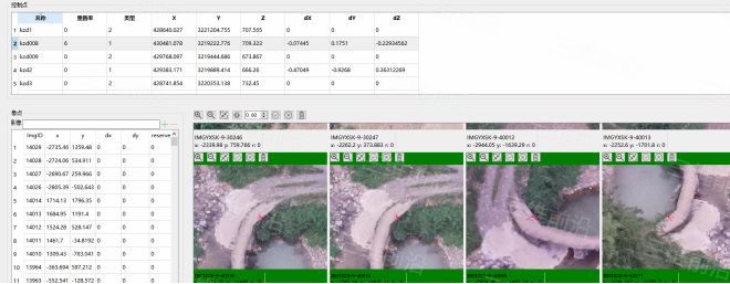 通过空三加密后的连接点和控制点坐标文件,实现多视角影像自检校区域网平差迭代计算,通过多次反复联合解算,最终得到符合精度要求的平差结果。